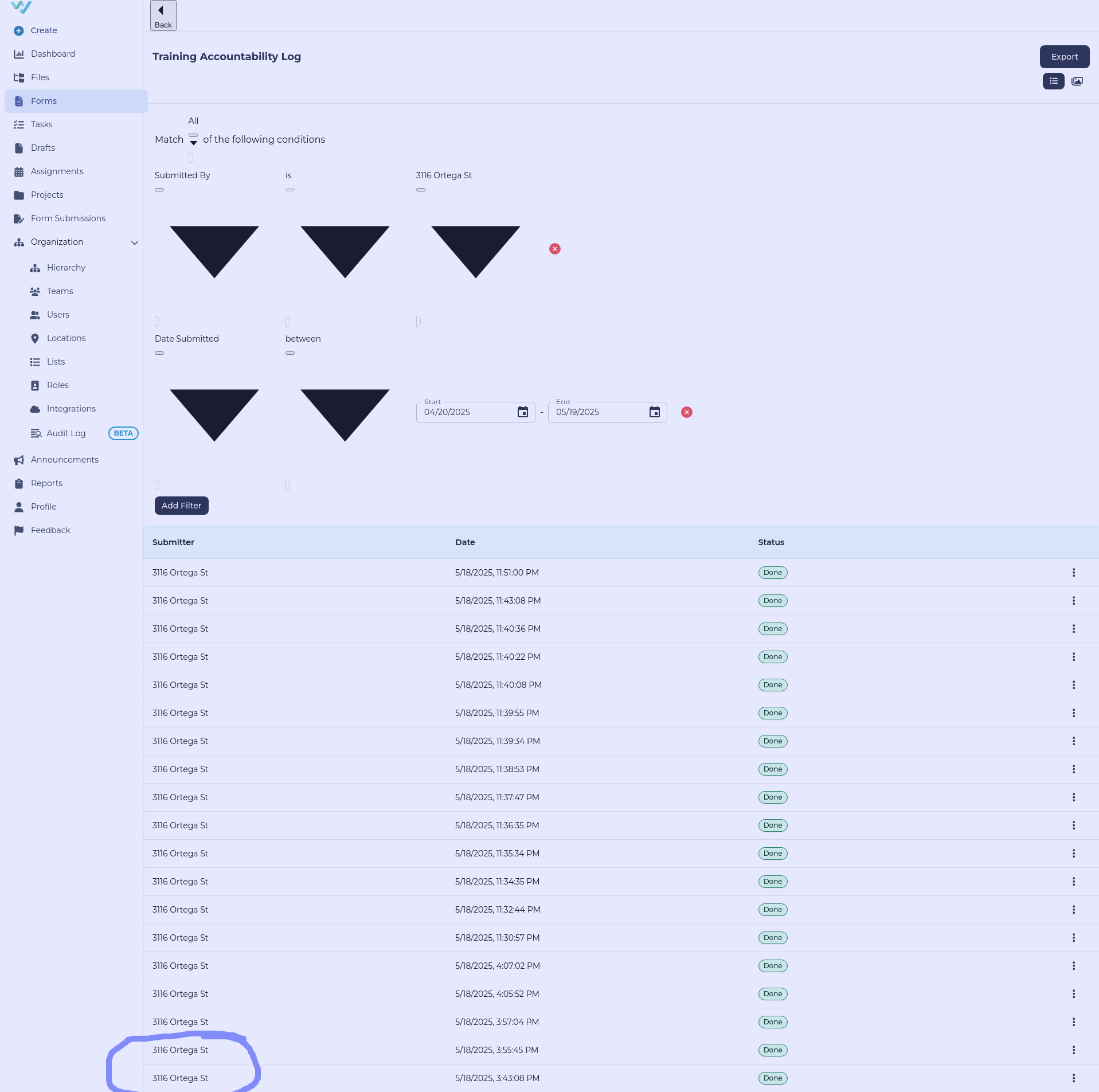 Total number of queries from search at bottom